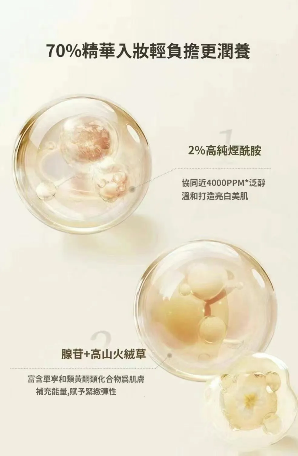 ——含有2%高純煙酰胺 ,有效抑制黑素轉移,均勻煥亮膚色!