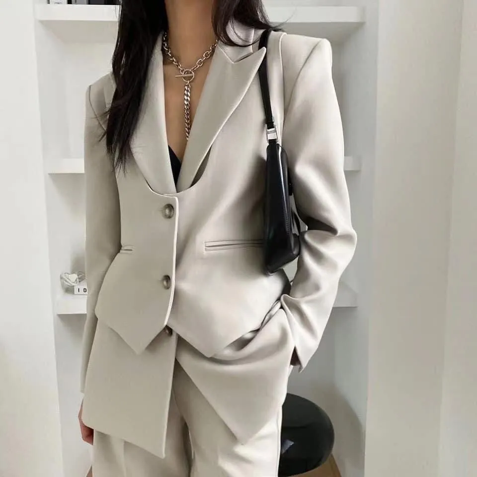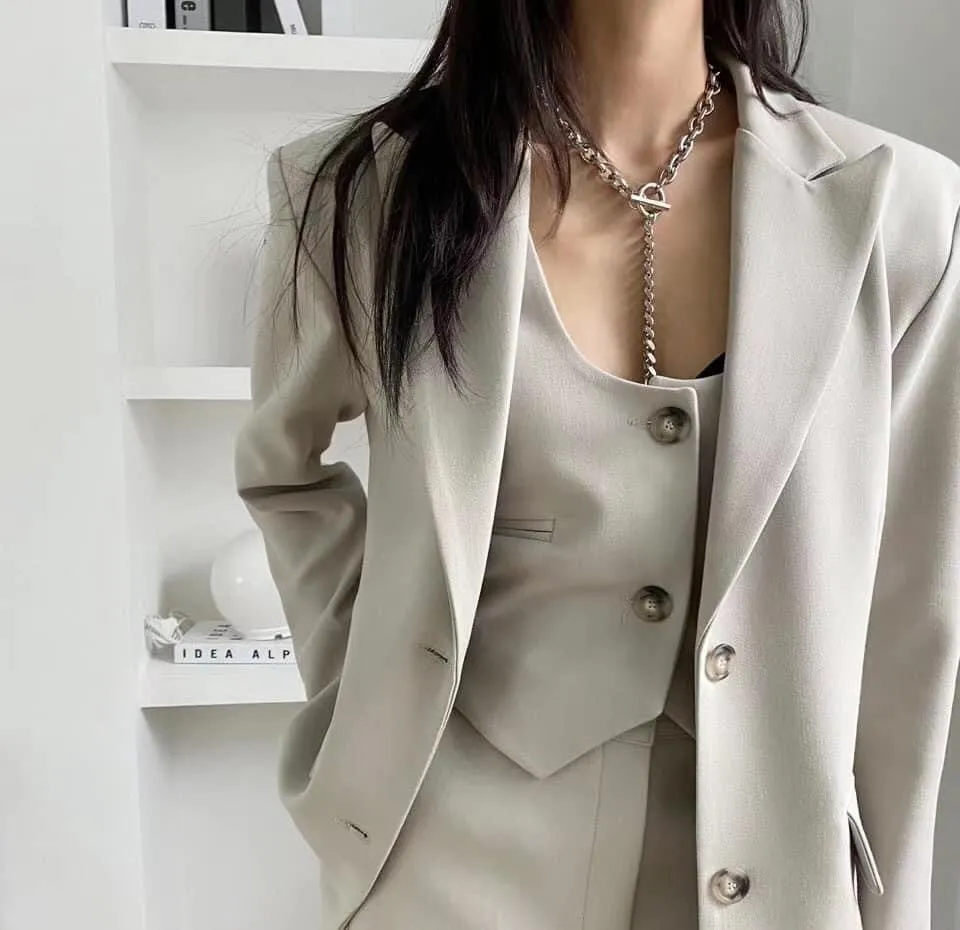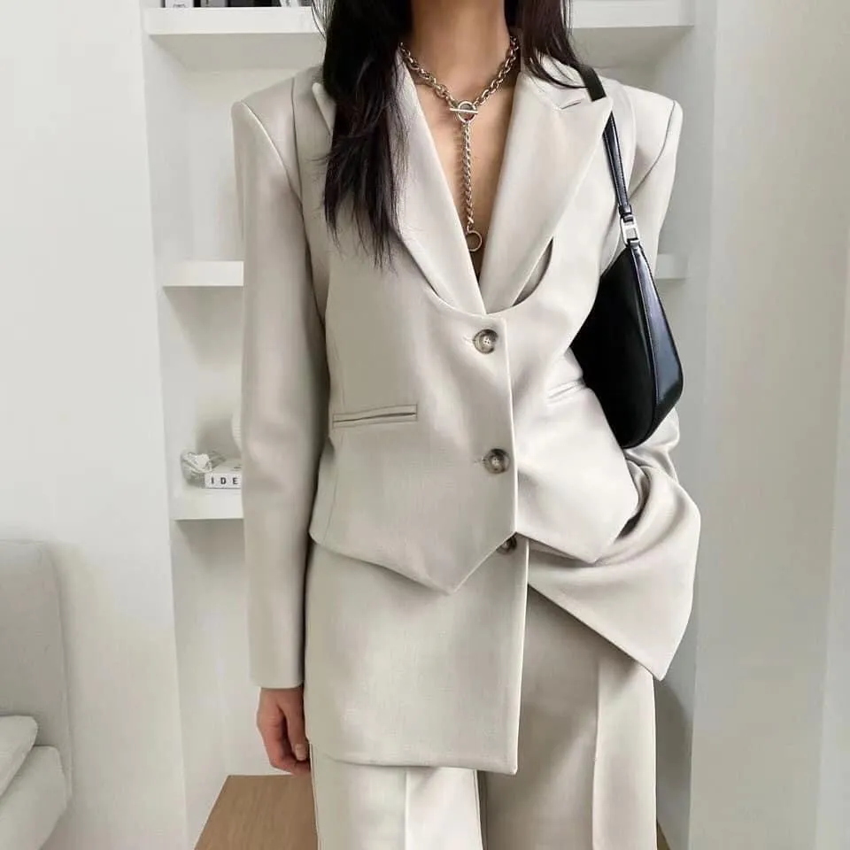 背心、外套皆有舒適內裡,外套有不可拆墊肩。