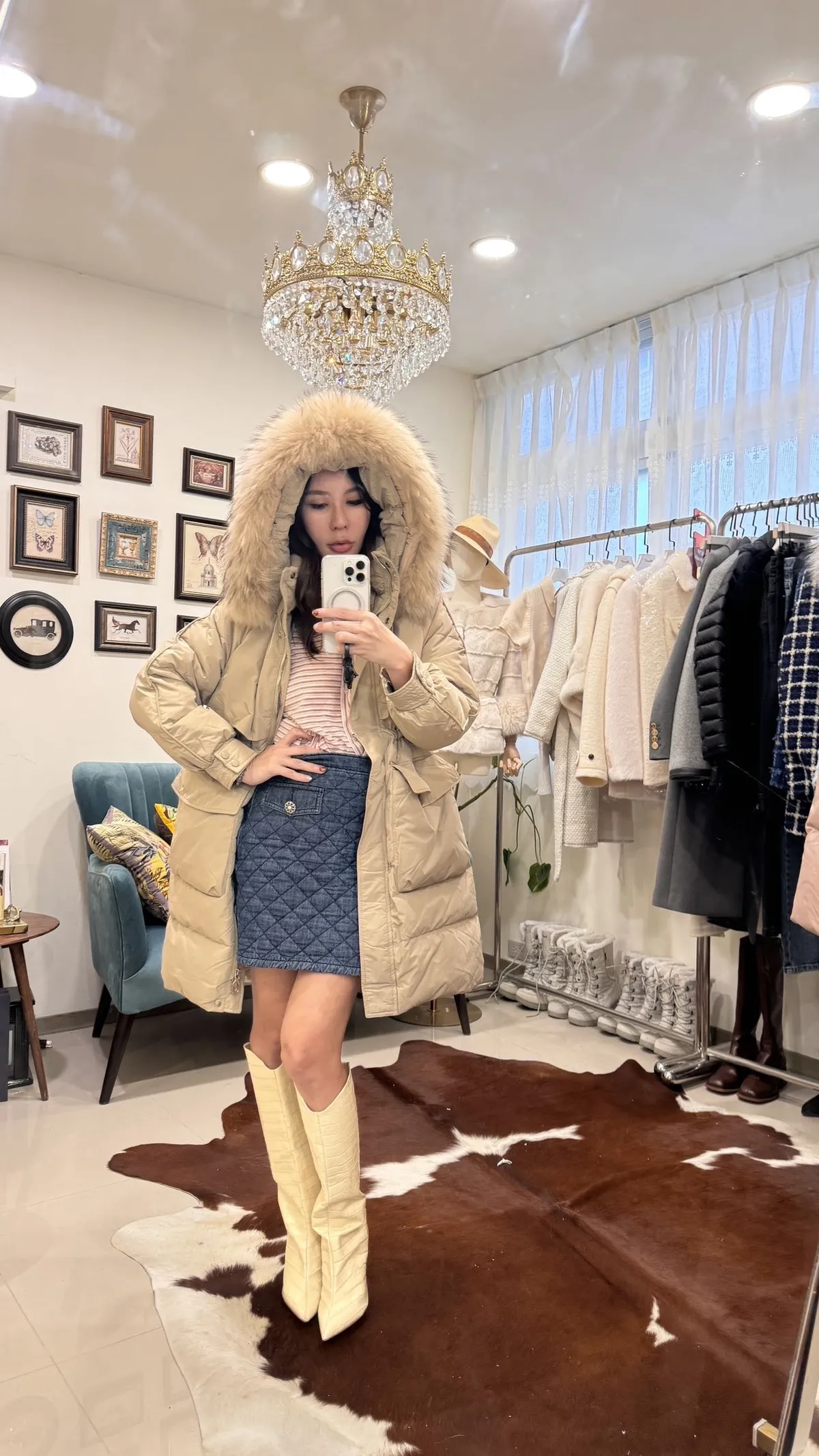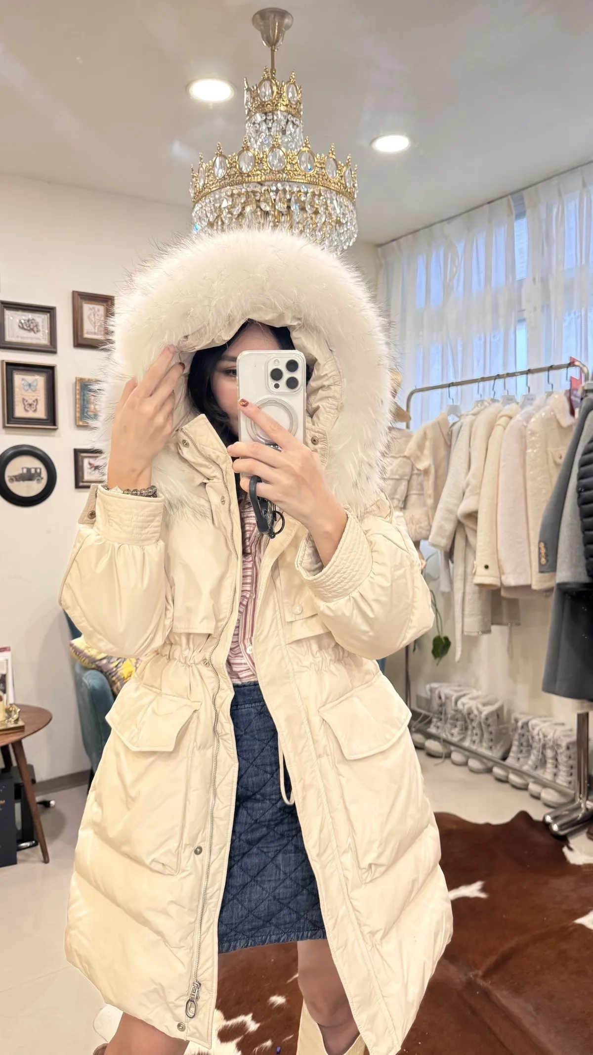 ✅毛領的毛解說:米白色配戴的就是米白色毛,卡其色就是原色毛,黑色就是黑毛領外套