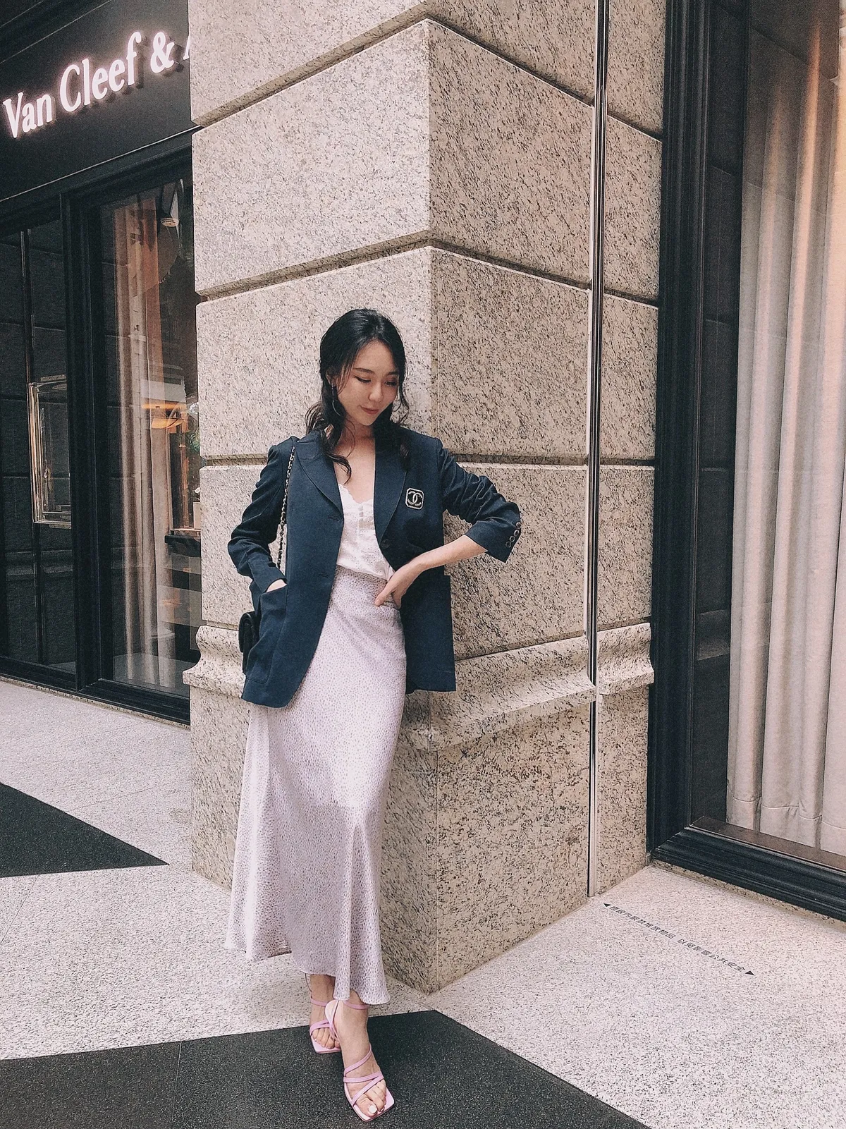 雪紡材質,有舒適內裡,側邊有隱形拉鍊。