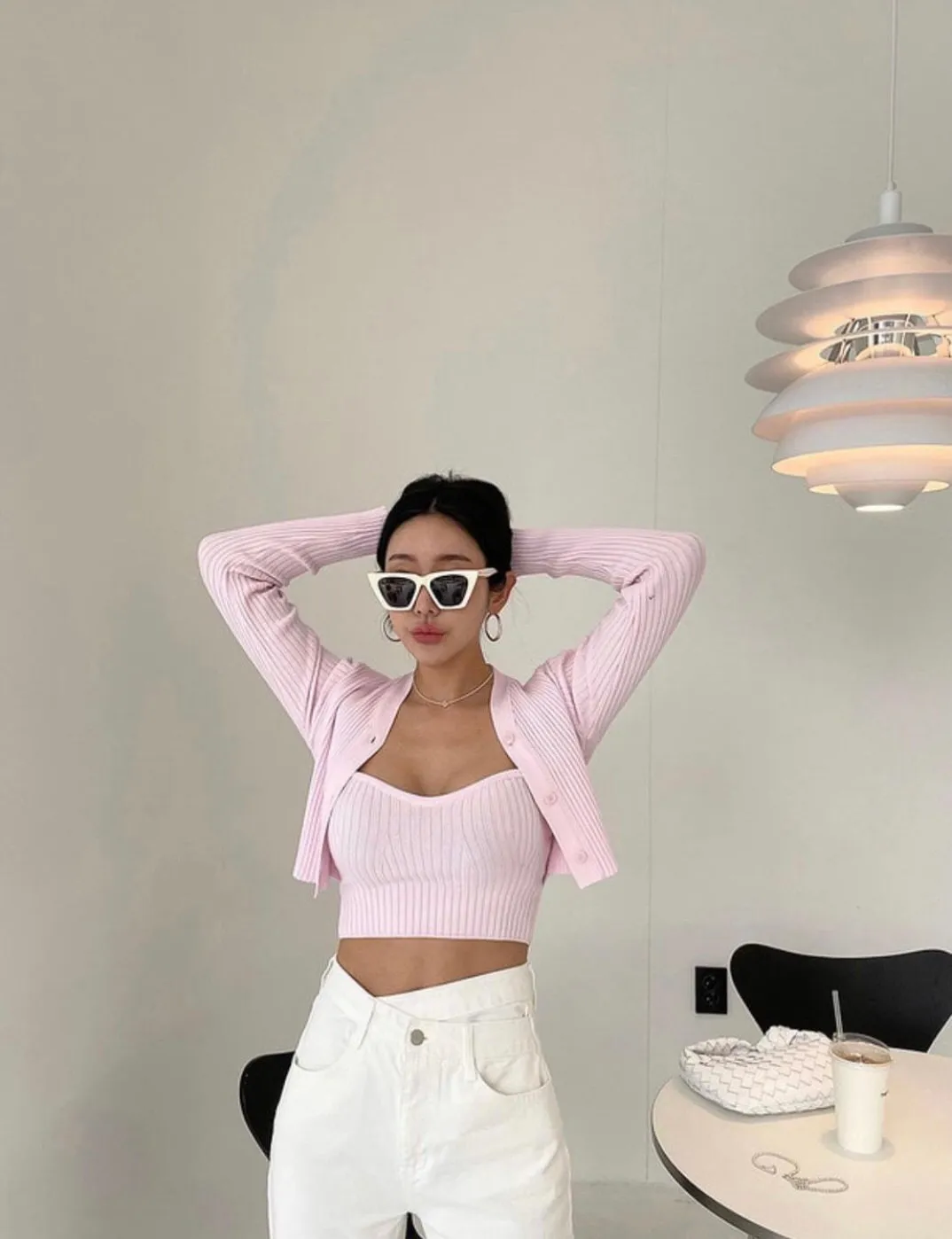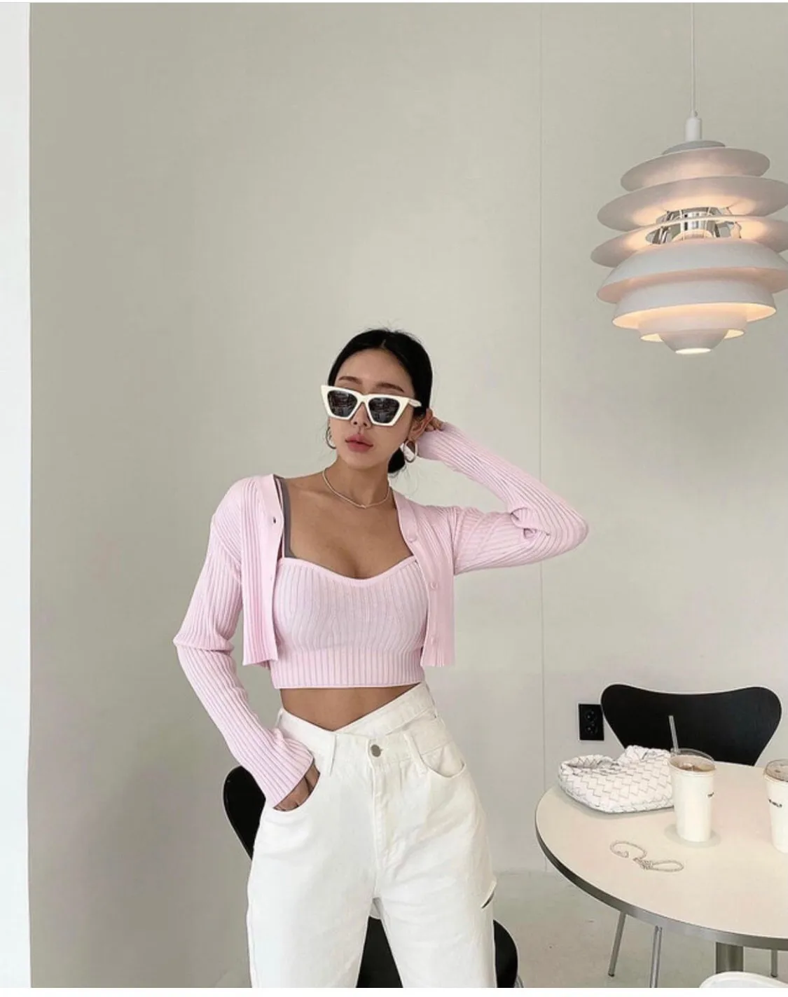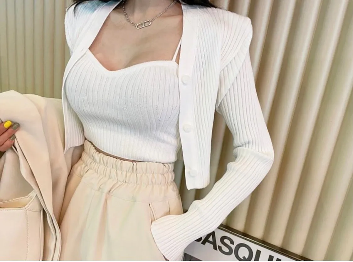 短版套裝設計搭配高腰褲裝或裙裝都十分適合,