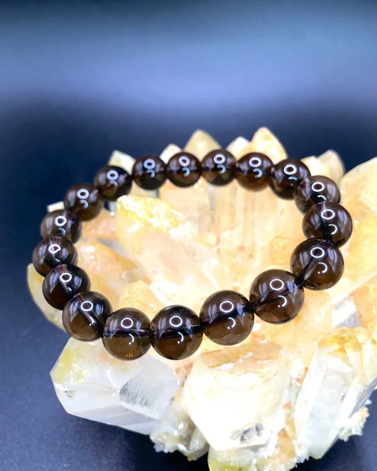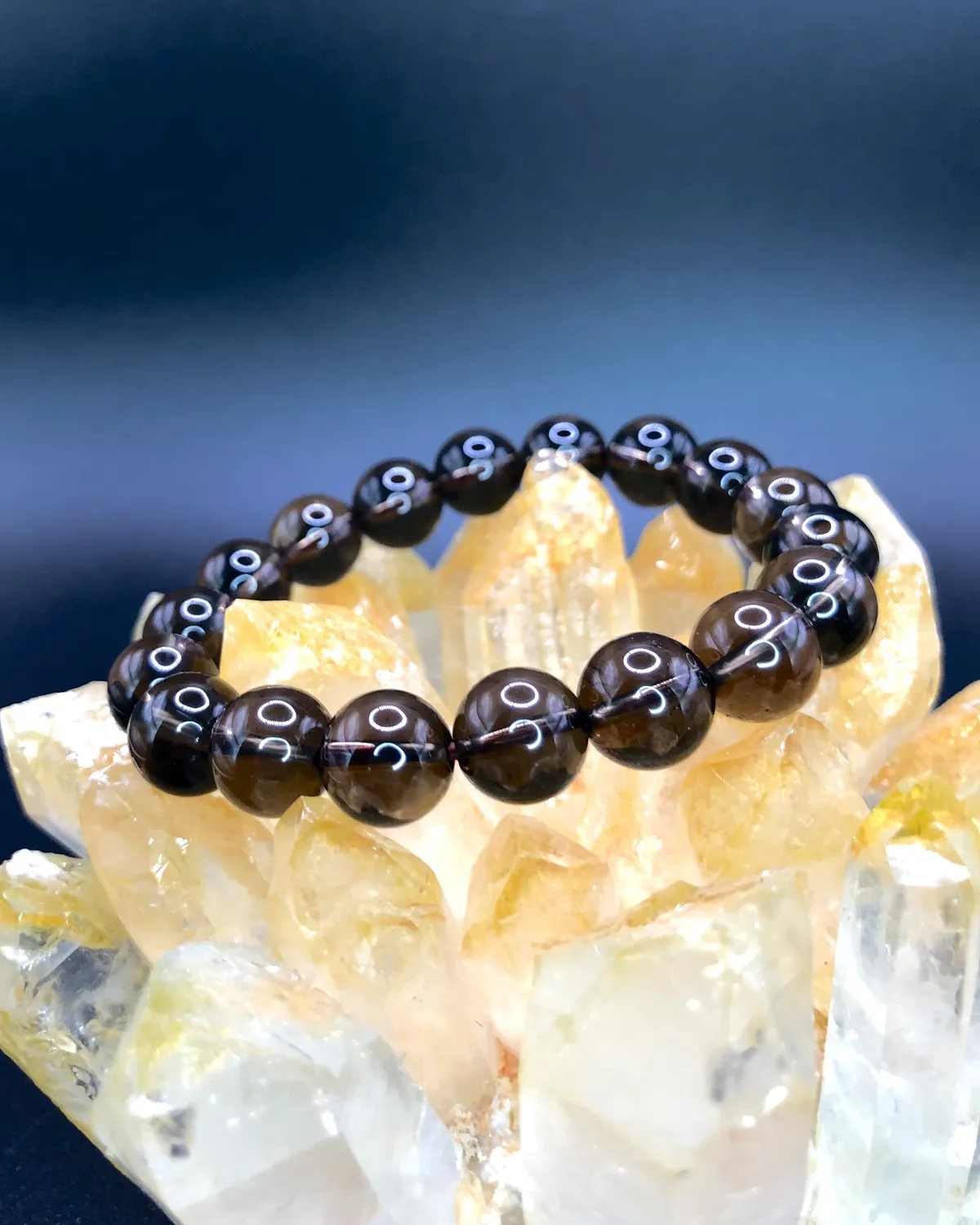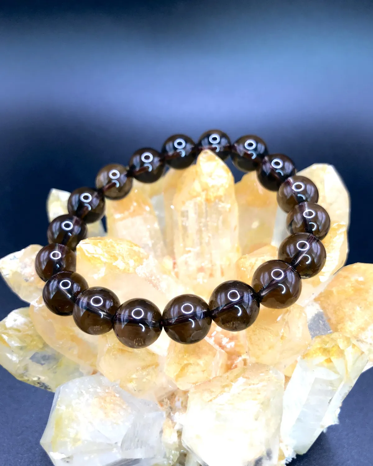 屬於穩定性強的天然水晶,能量較深沉、穩重、踏實,配戴茶晶可以使情
