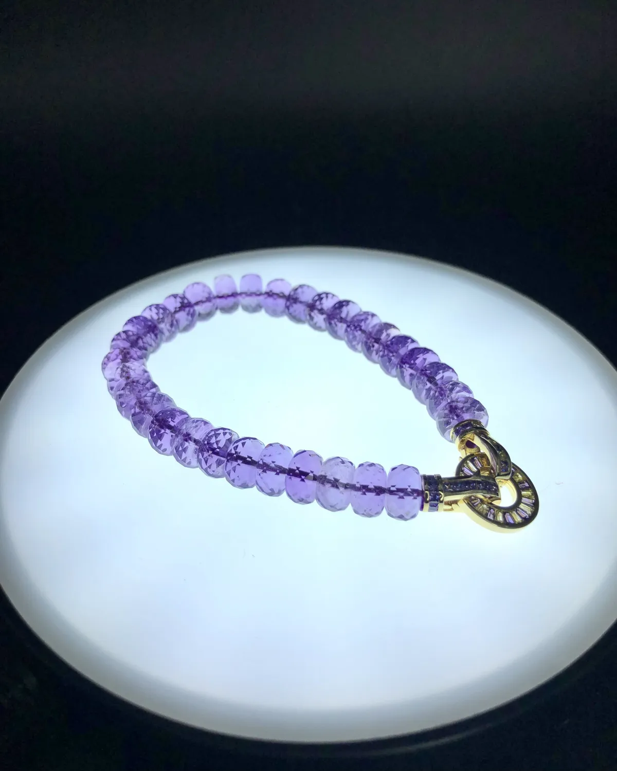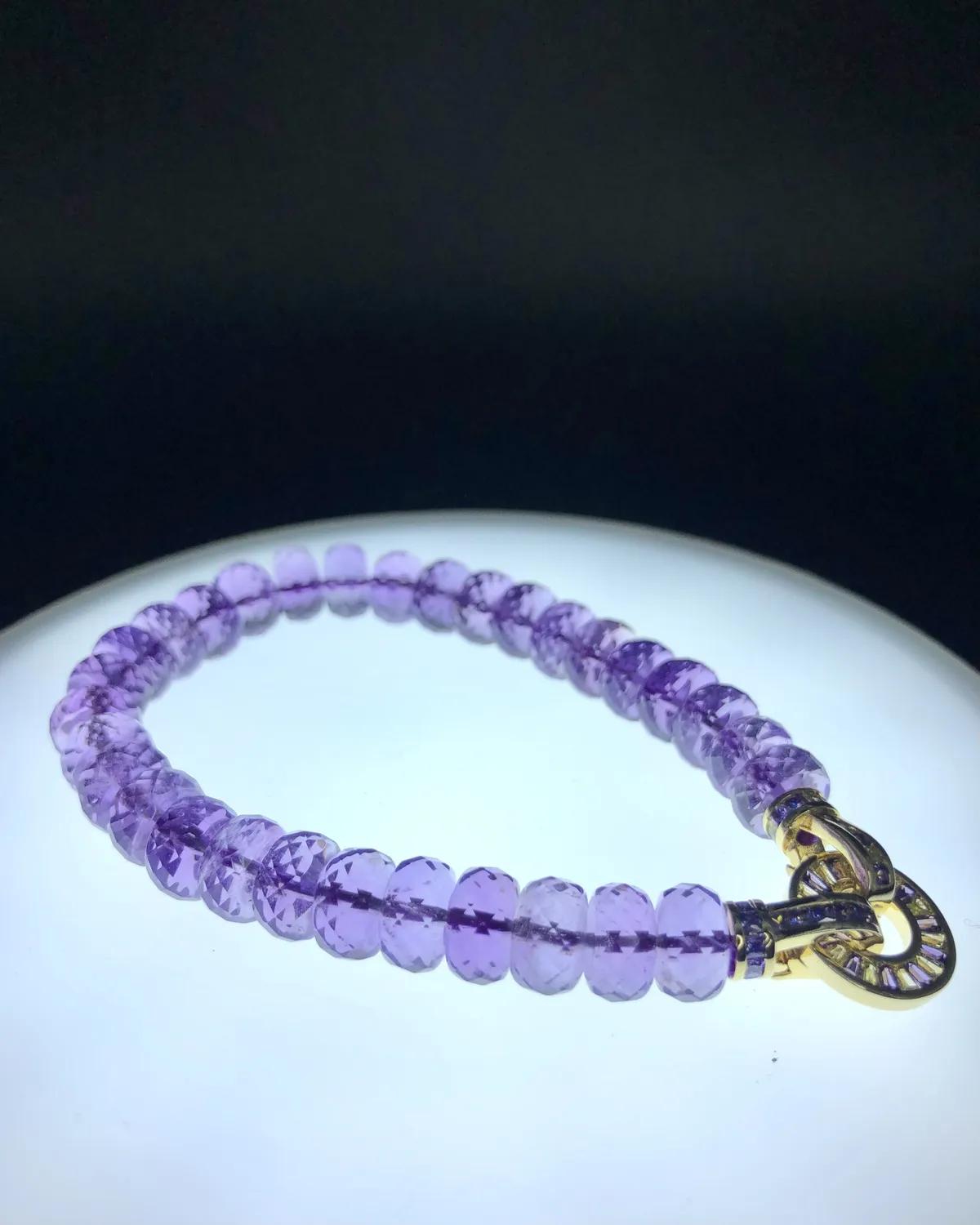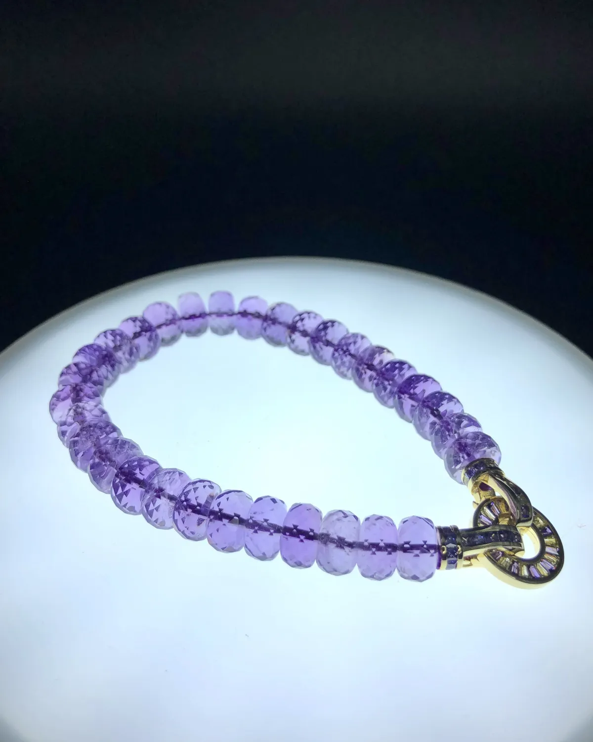 散發著紫色柔和的光,非常淡雅,是唯一紫色系的寶石。主「智慧」與「財