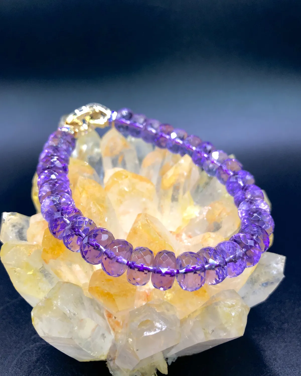 再將水晶飾品放置於水晶洞內或晶簇上一晚(至少淨化四小時